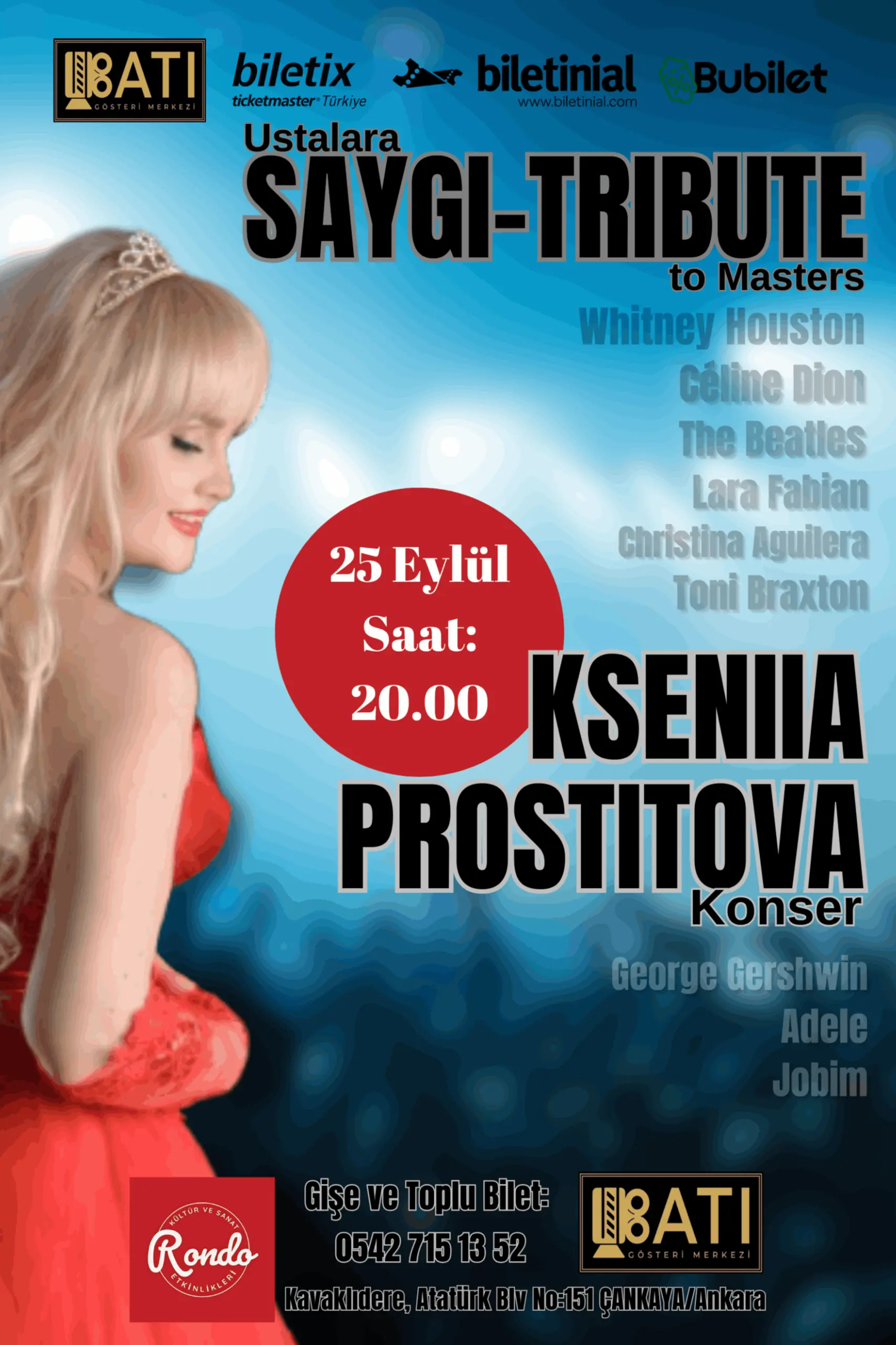 Uluslararası arenada adından söz ettiren sanatçı Kseniia Prostitova, Ankara'nın kültürel zenginliklerinden biri olan Batı Sineması'nda unutulmaz bir performansa imza atacak. 25 Eylül Çarşamba akşamı gerçekleşecek konser, müzikseverlere geçmişin efsanevi melodilerini ve modern hitleri sunacak.